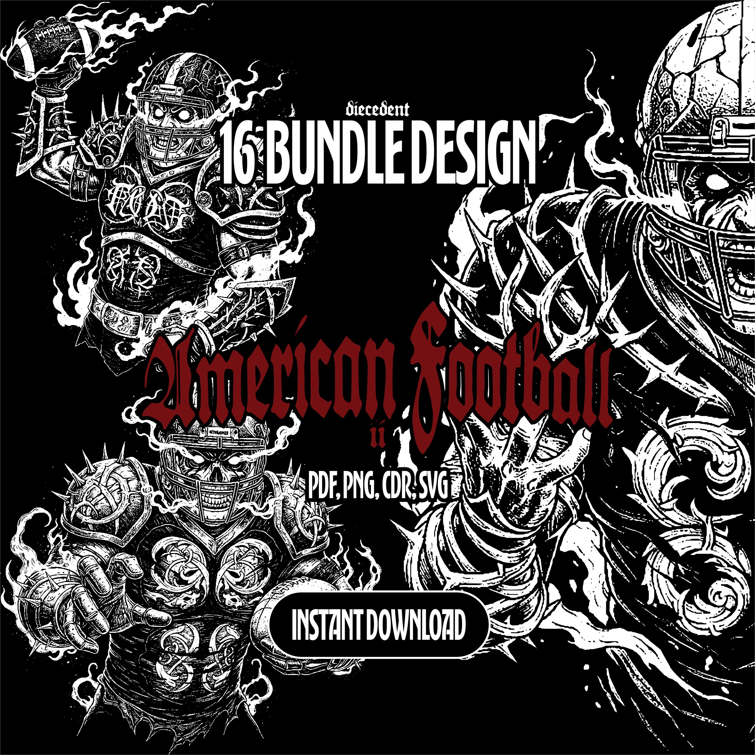 16 Design American Football 2 Sport Gothic Grunge Vector Art Bundle