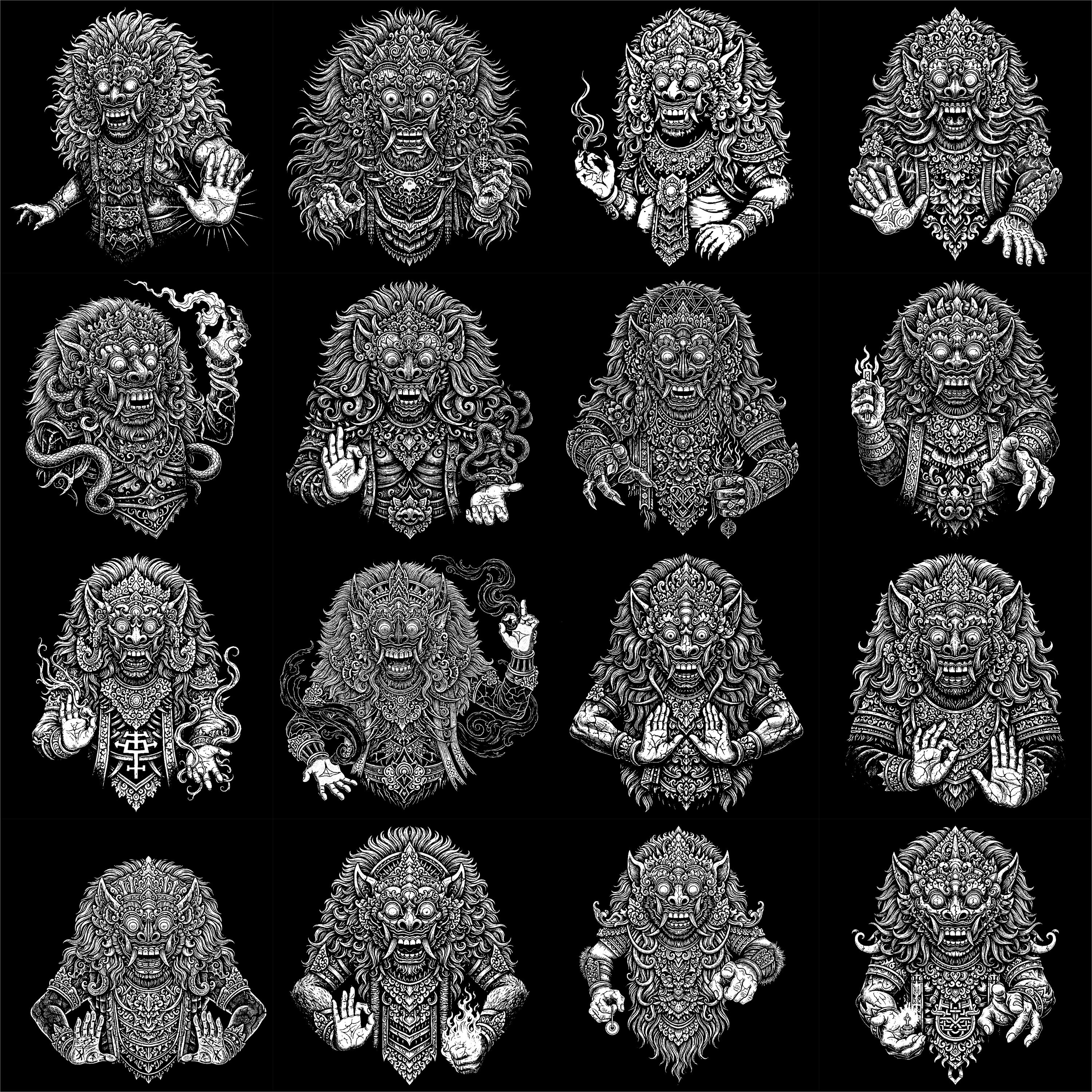 16 Design Barong Origin Bali Gothic Grunge Vector Art Bundle