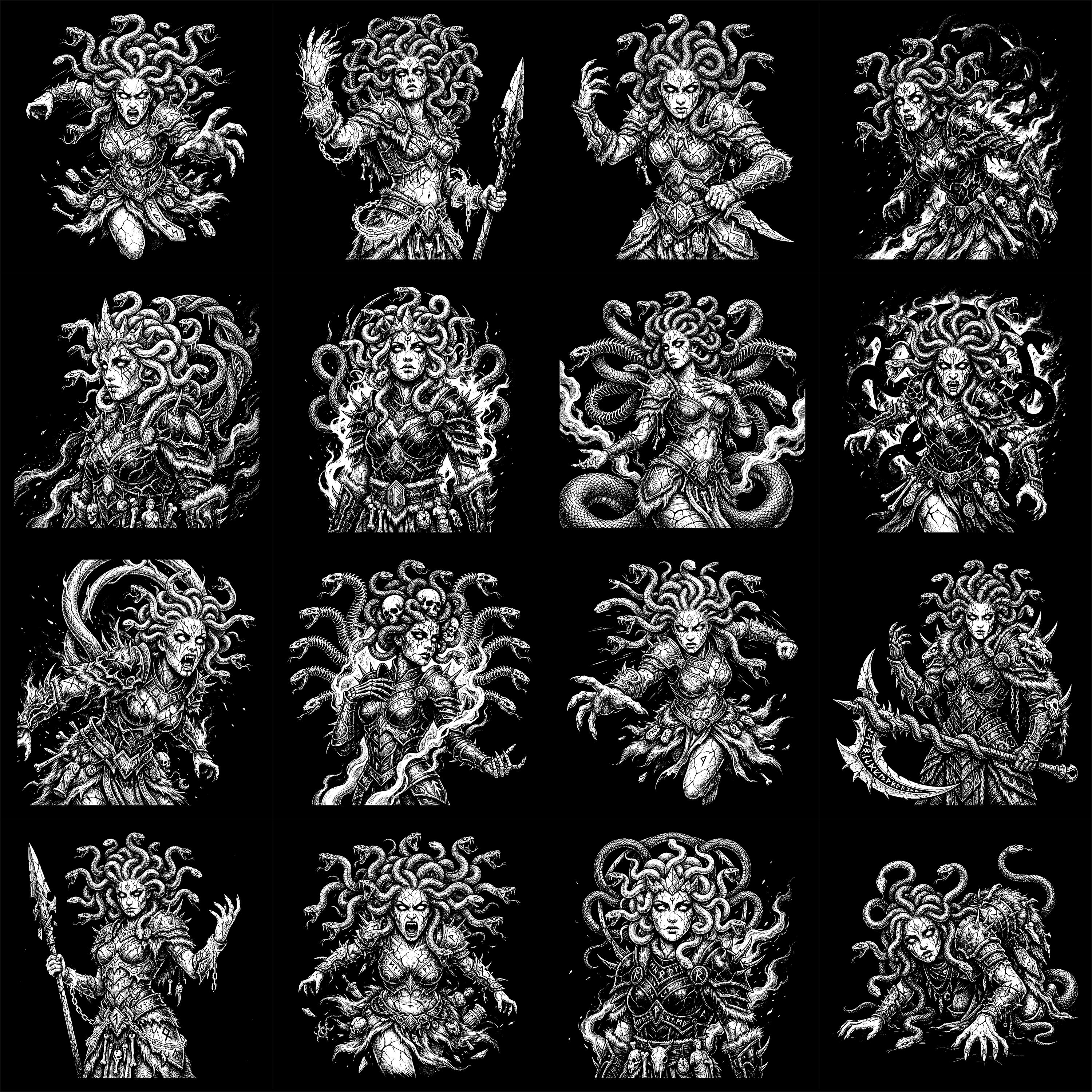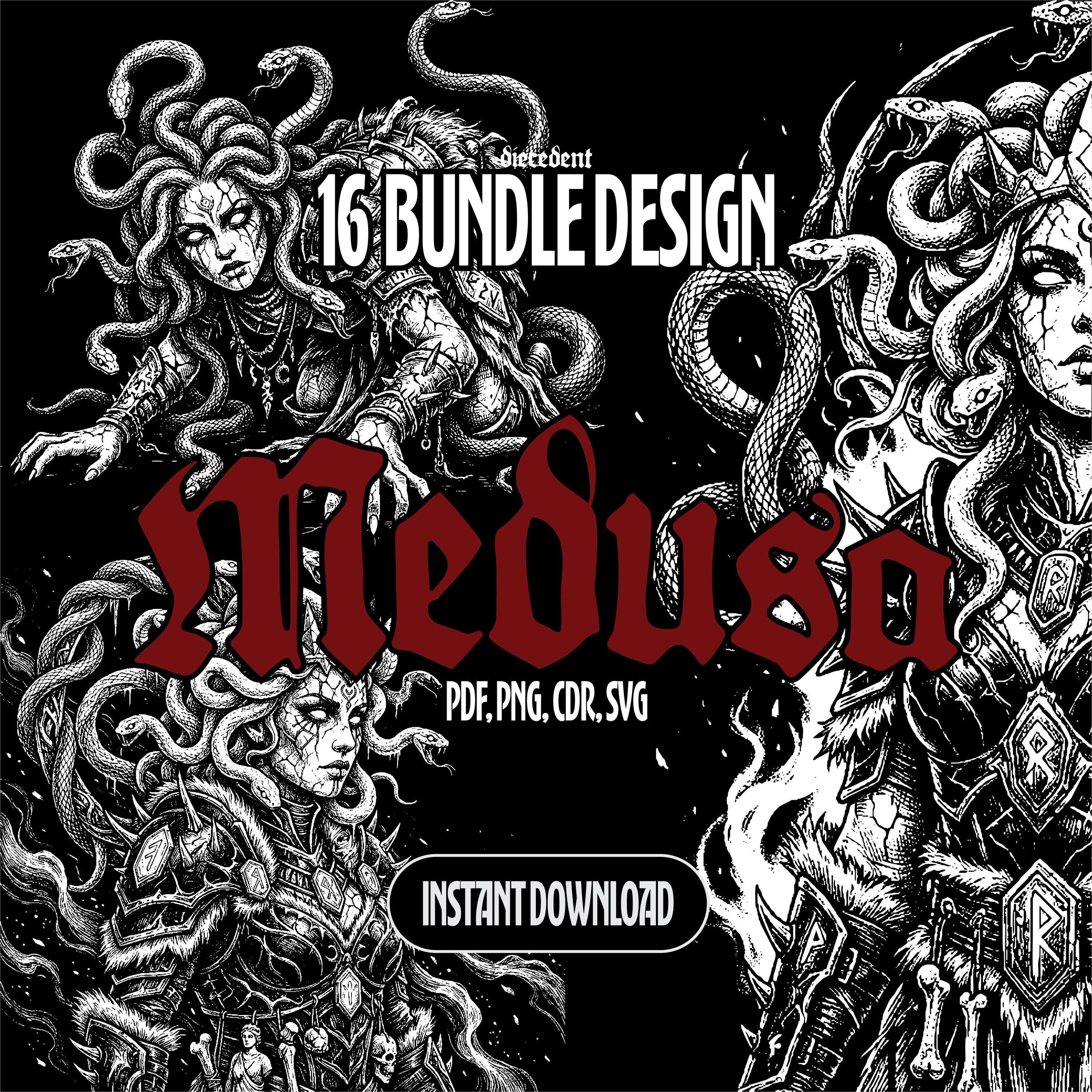 16 Design Medusa Greek Gothic Grunge Vector Art Bundle
