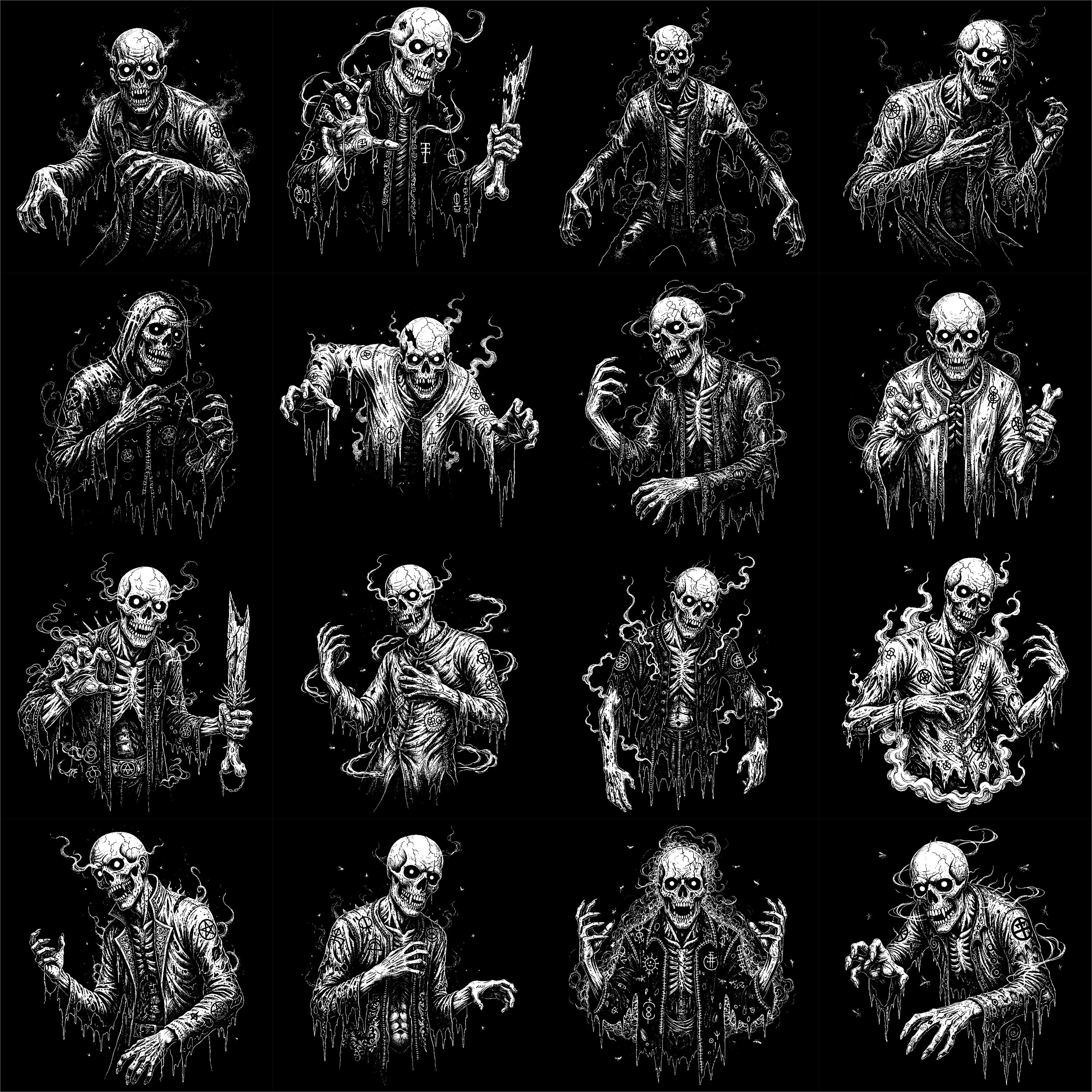 16 Design Zombie Undead Gothic Grunge Vector Art Bundle