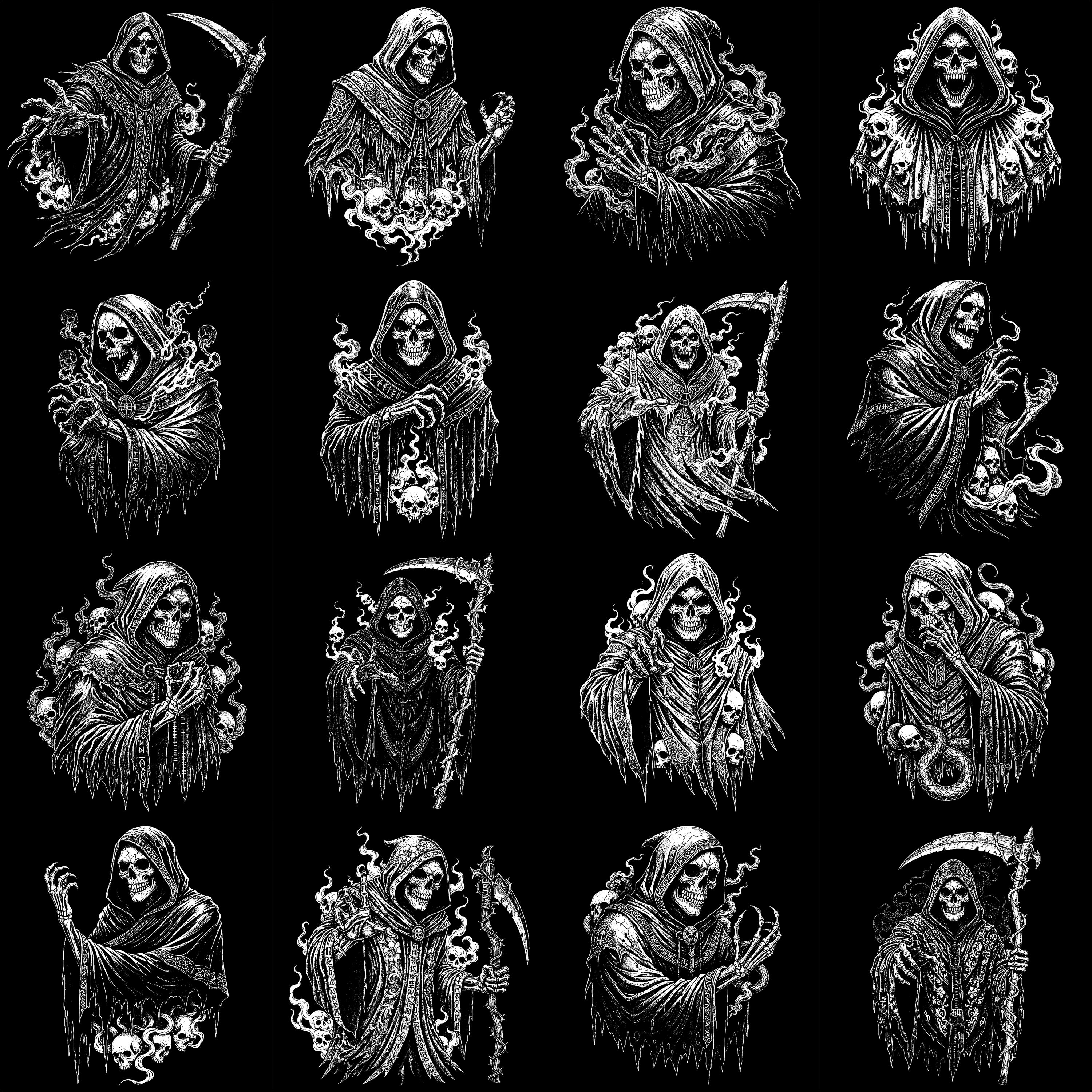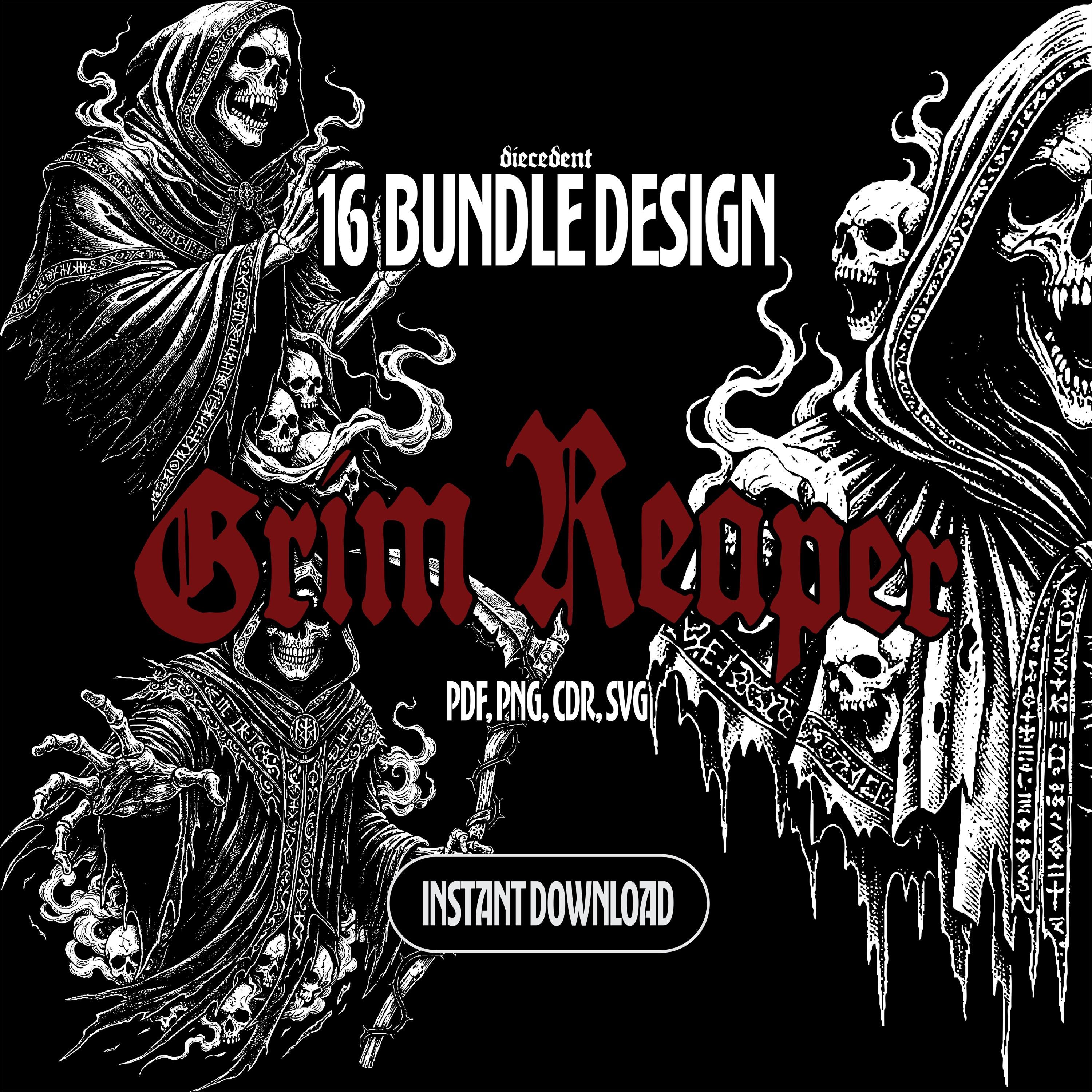 16 Design Grim Reaper Gothic Grunge Vector Art Bundle