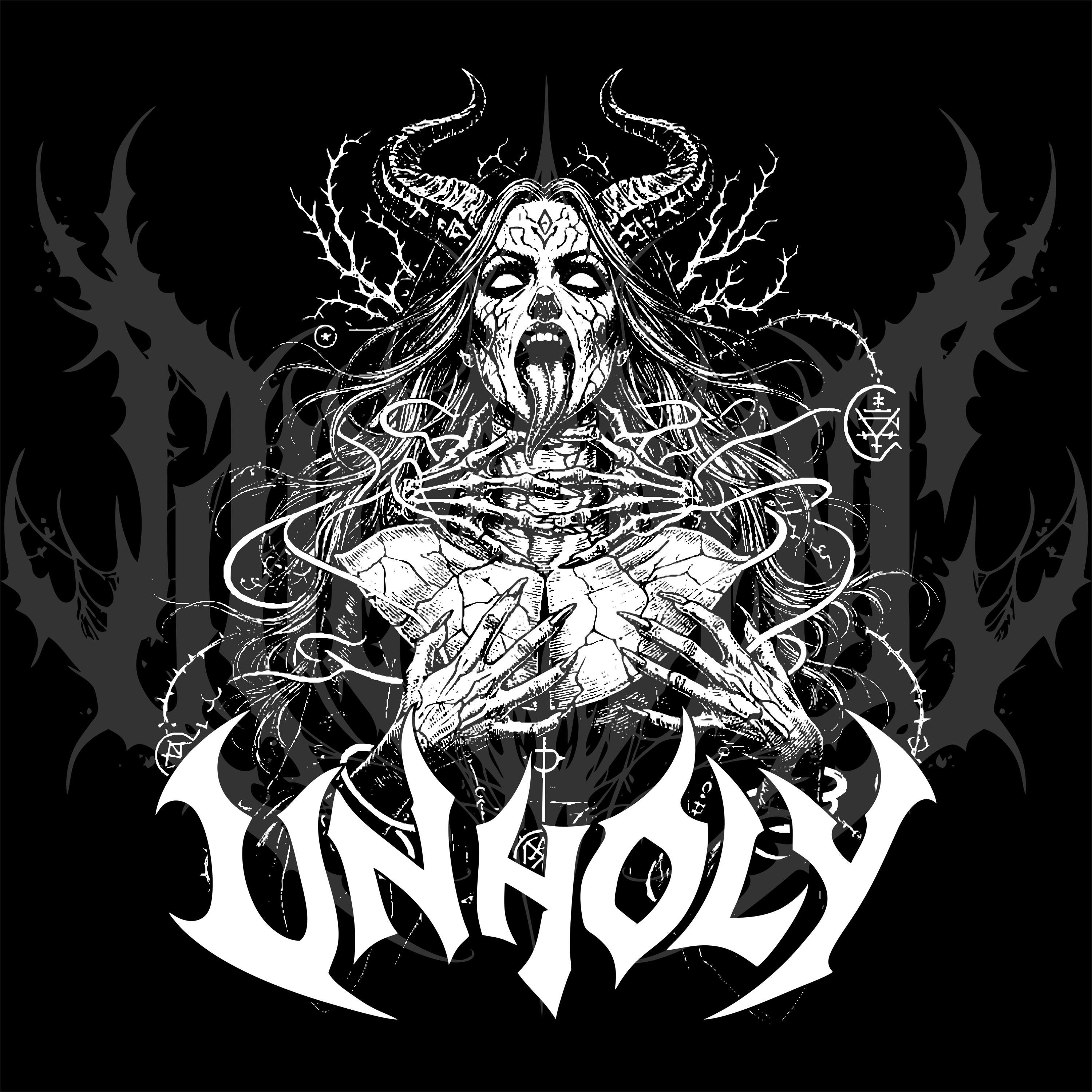 Design B&W Front Tee Unholy Nun Satanic Gothic Grunge Vector Art