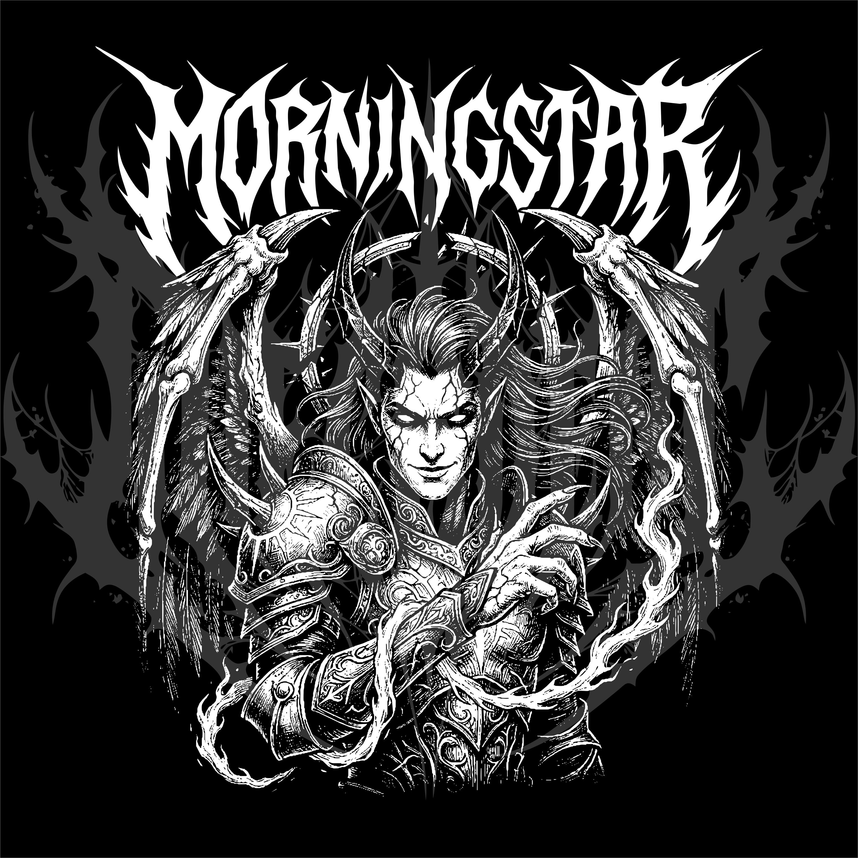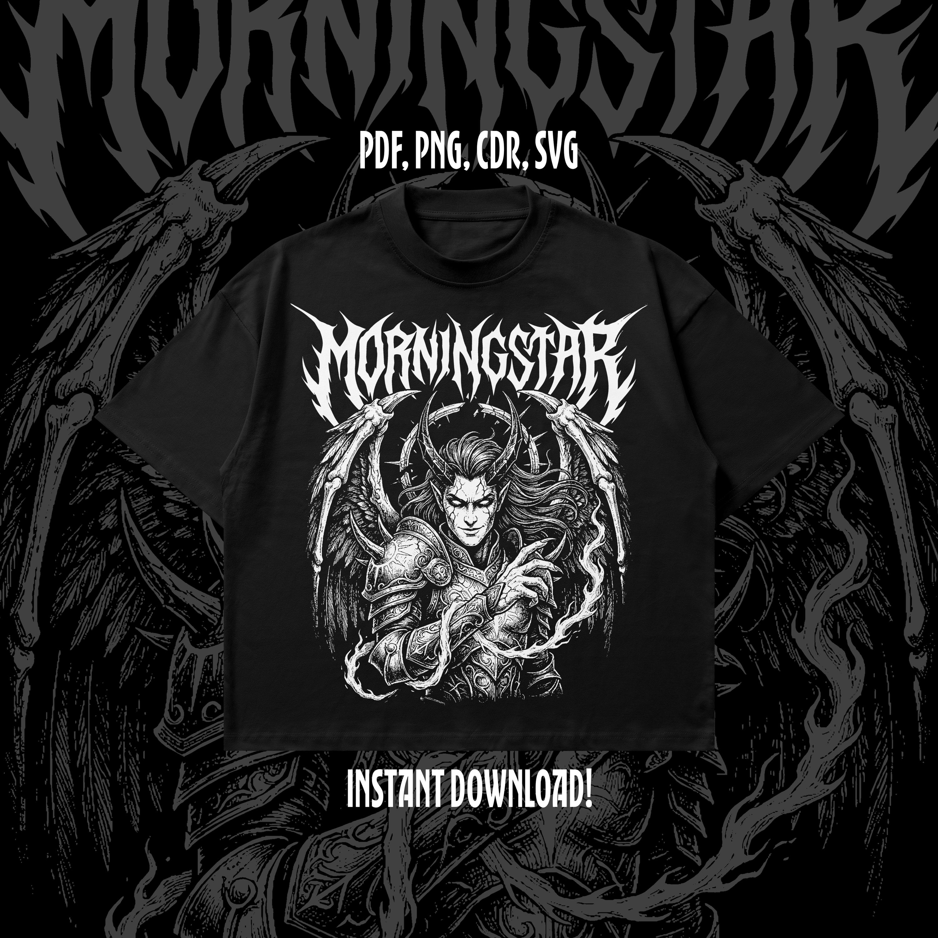 Design B&W Front Tee Lucifer Morningstar Gothic Grunge Vector Art
