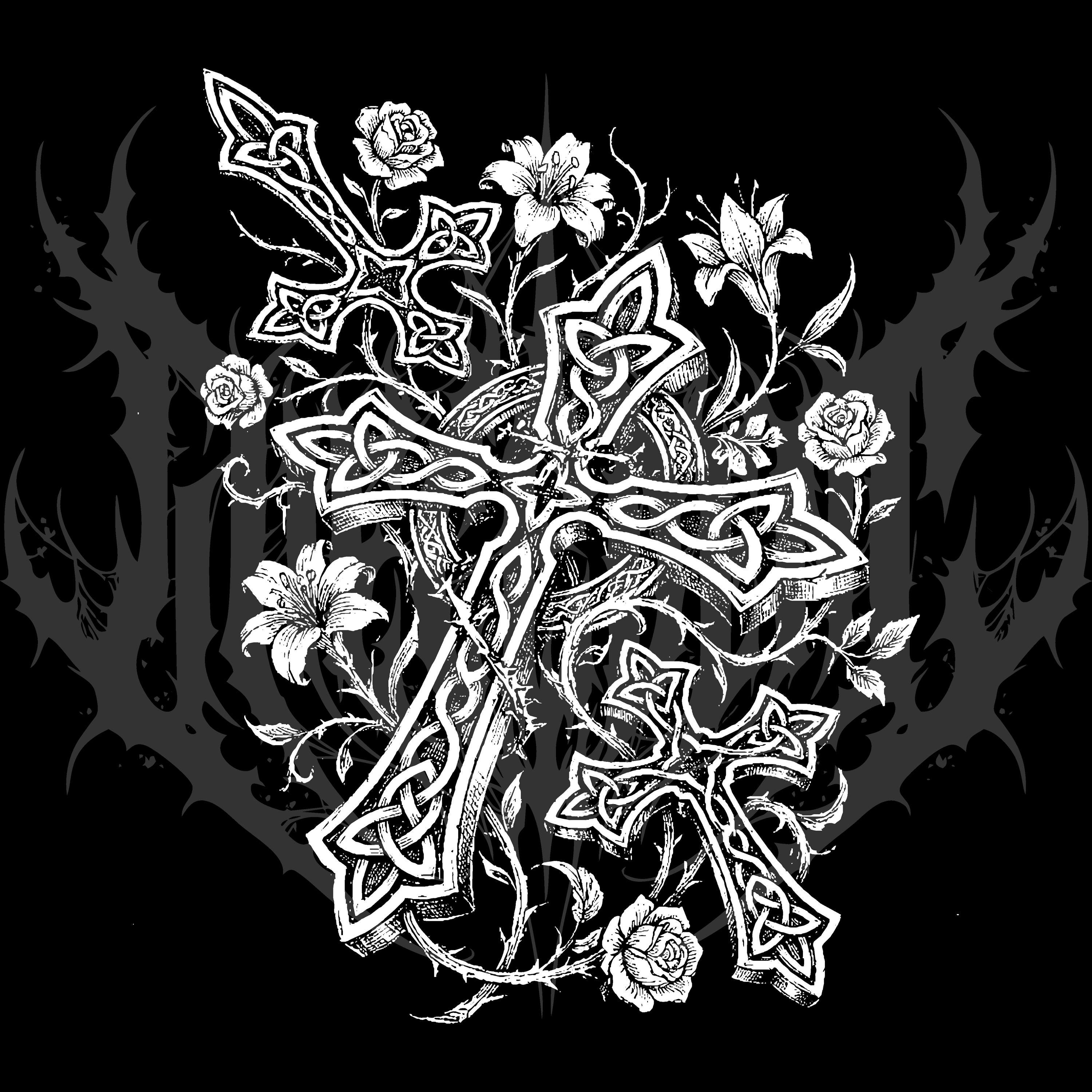 Design B&W Back Tee Dark Gothic Cross Symbol Grunge Vector Art
