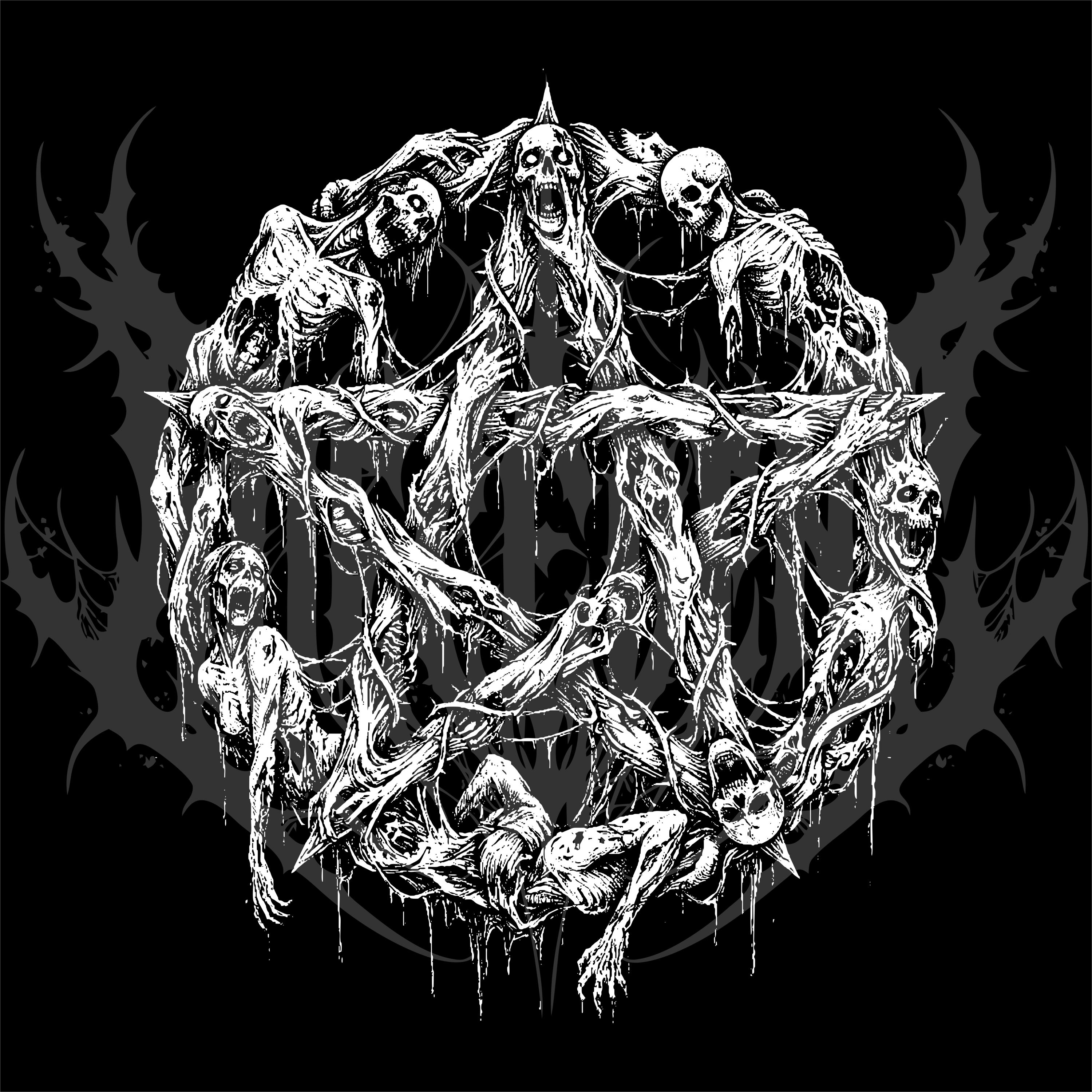 Design B&W Back Tee Dark Corpse Pentagram Skull Horror Skeleton Gothic Grunge Vector Art