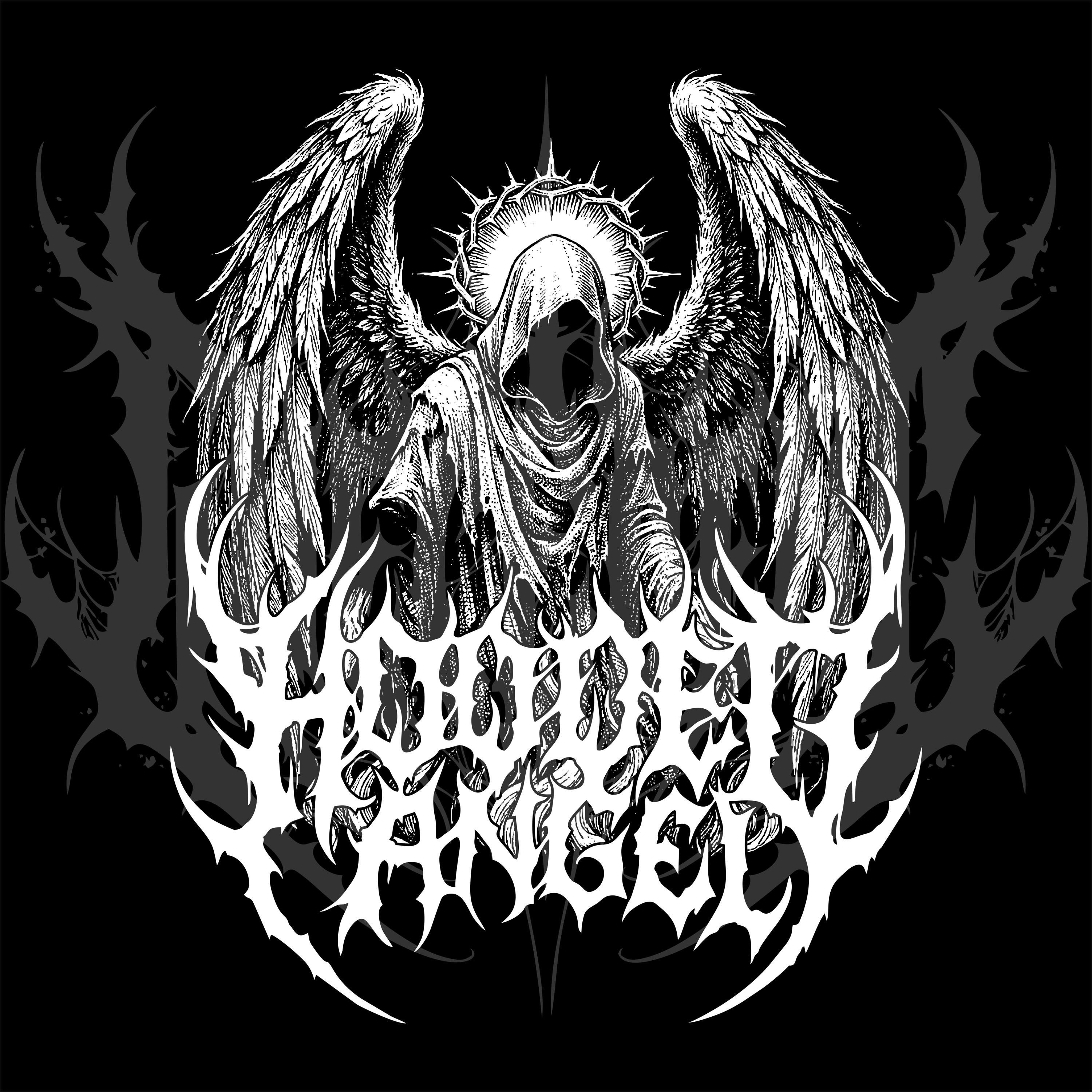 Design B&W Front Tee Dark Hooded Angel Gothic Grunge Vector Art