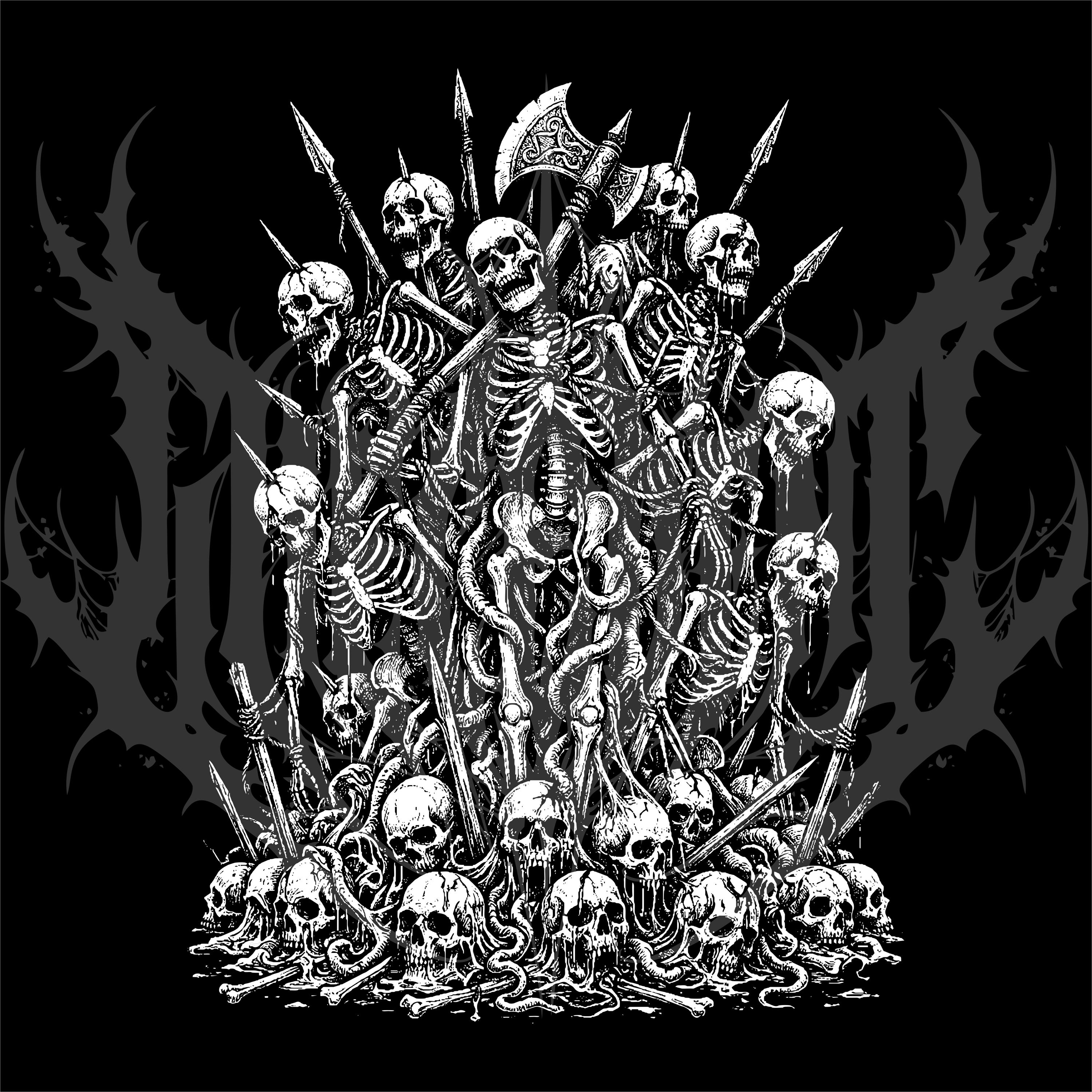 Design B&W Back Tee Dark Impaled Corpse Monolith Horror Skeleton Gothic Grunge Vector Art