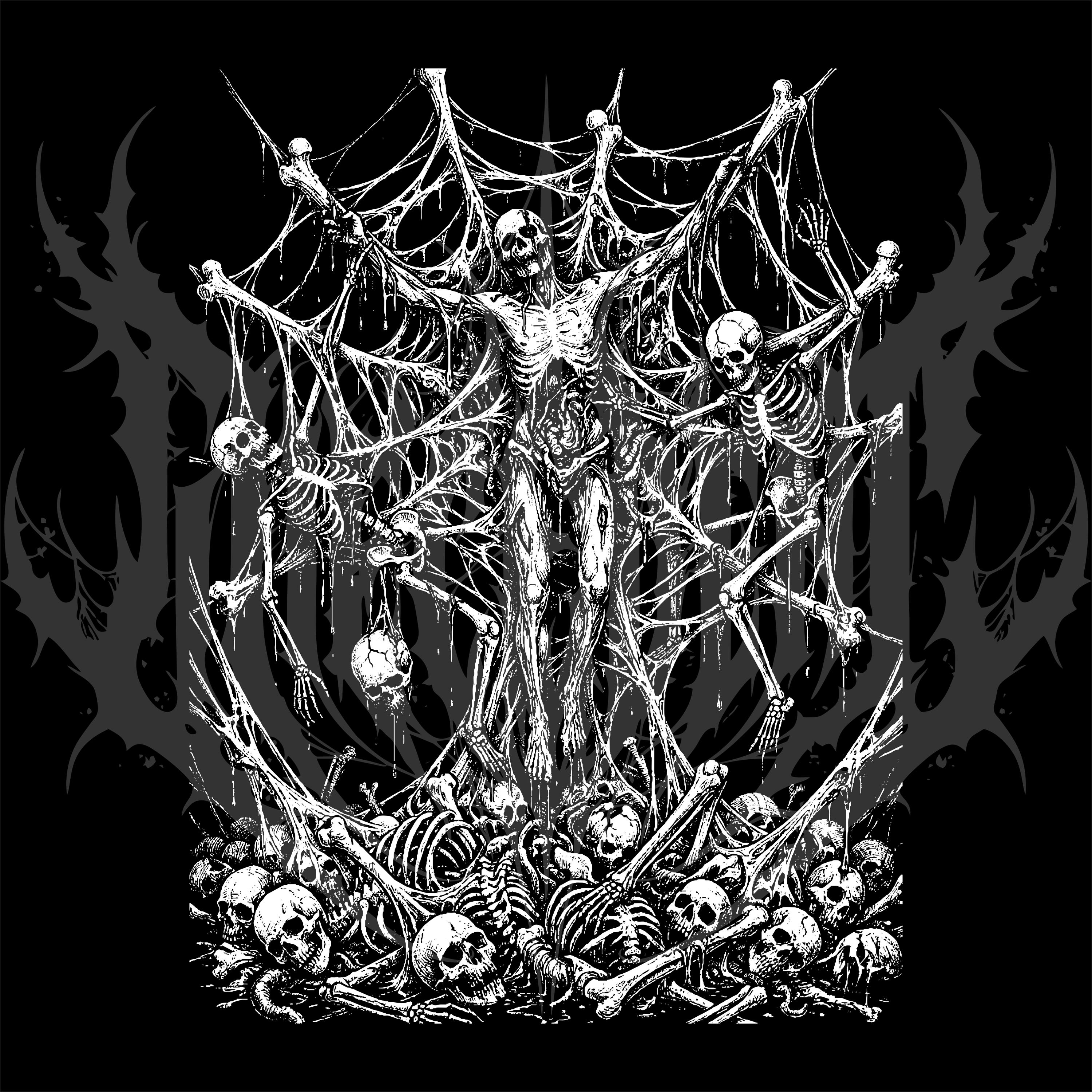 Design B&W Back Tee Dark Web of the Damned Horror Skeleton Gothic Grunge Vector Art