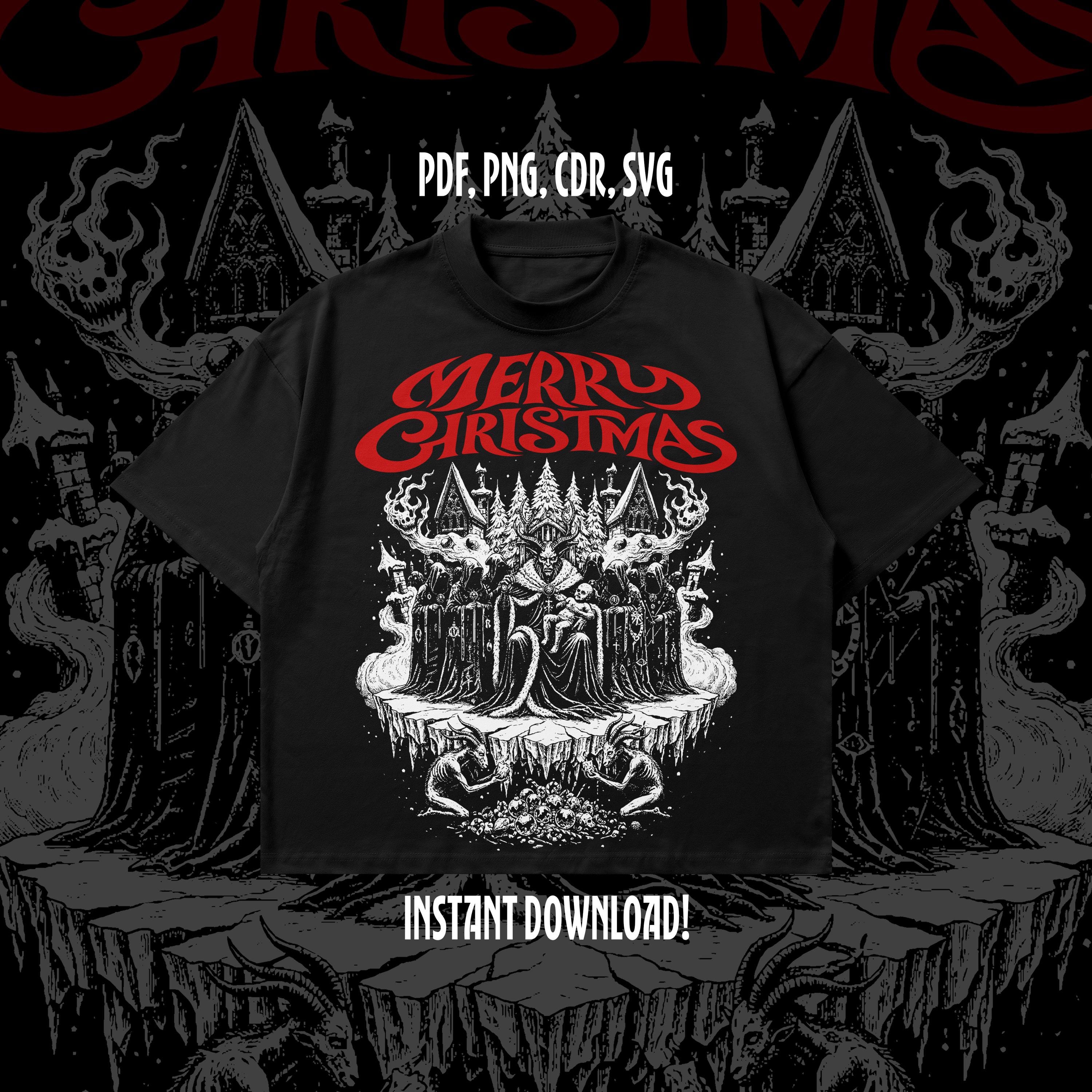 Design Christmas Front Tee Infernal Christmas Council Dark Gothic Grunge Vector Art