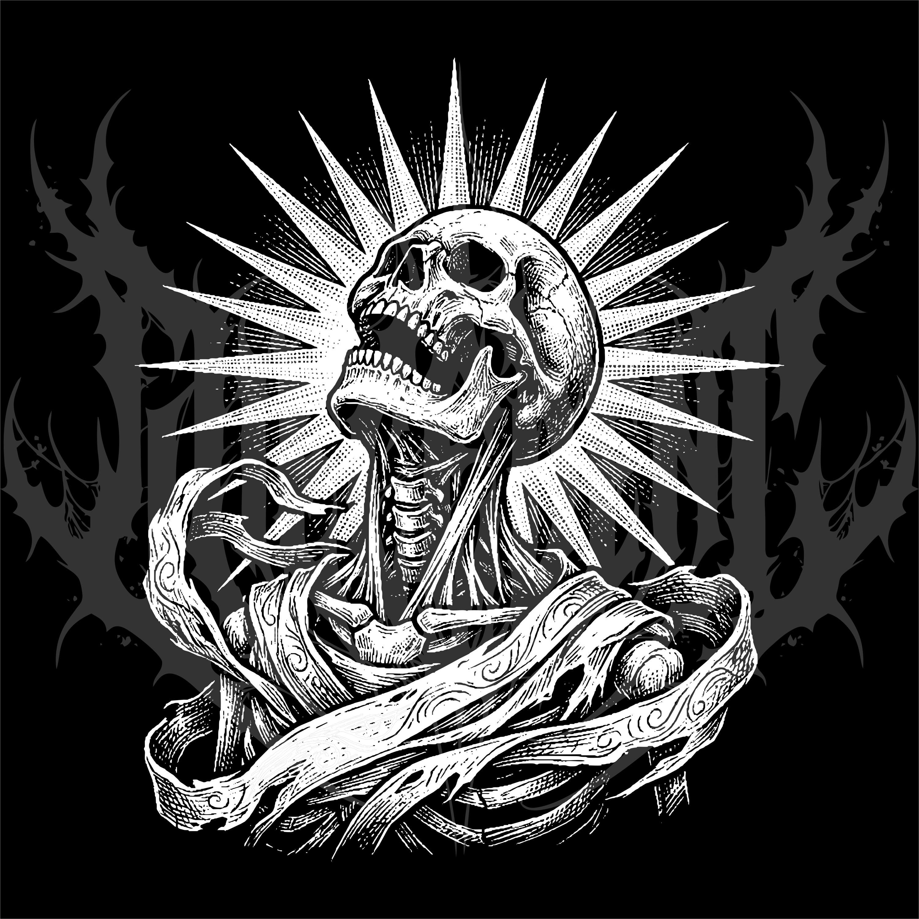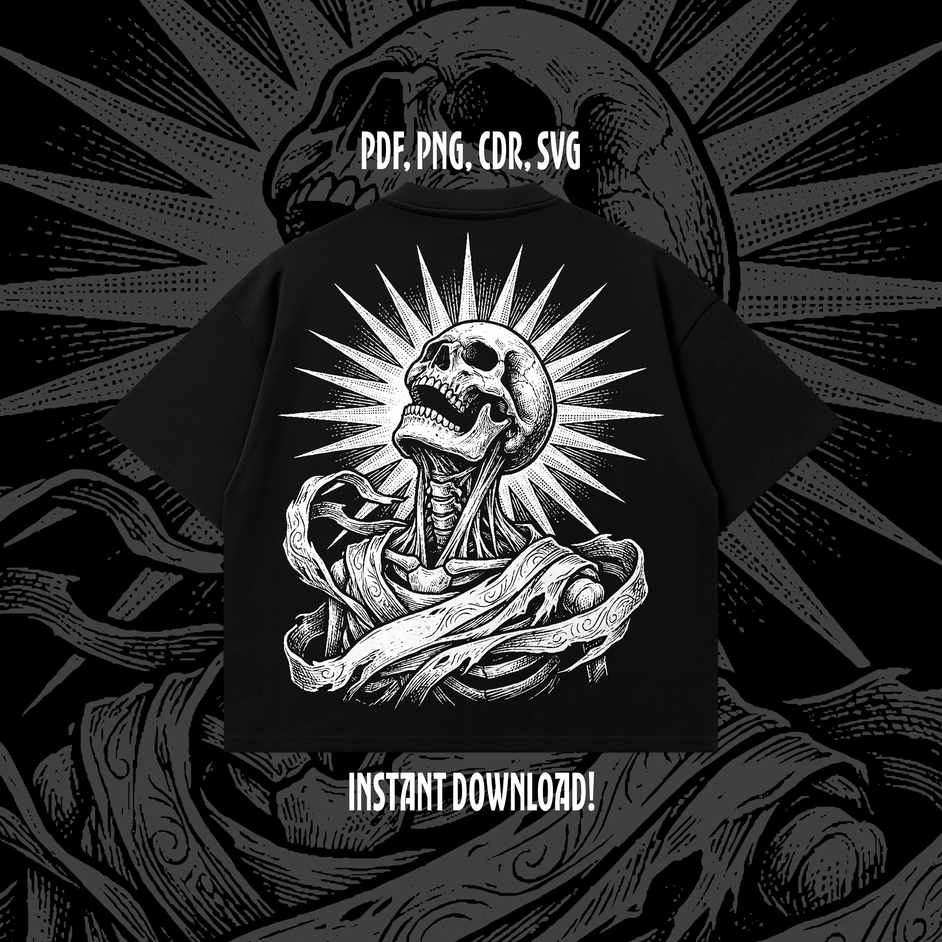 Design B&W Back Tee Dark Radiant Skeletal Prophet Horror Skeleton Gothic Grunge Vector Art