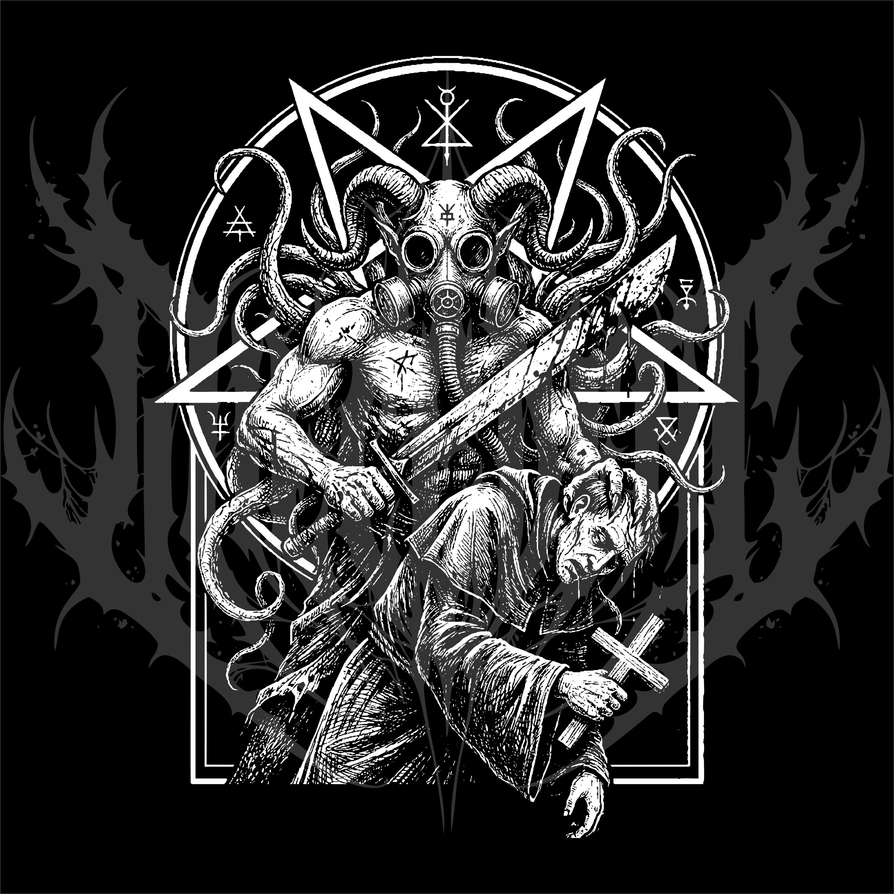 Design B&W Back Tee Dark Demonic Assailant Pentagram Horror Skeleton Gothic Grunge Vector Art