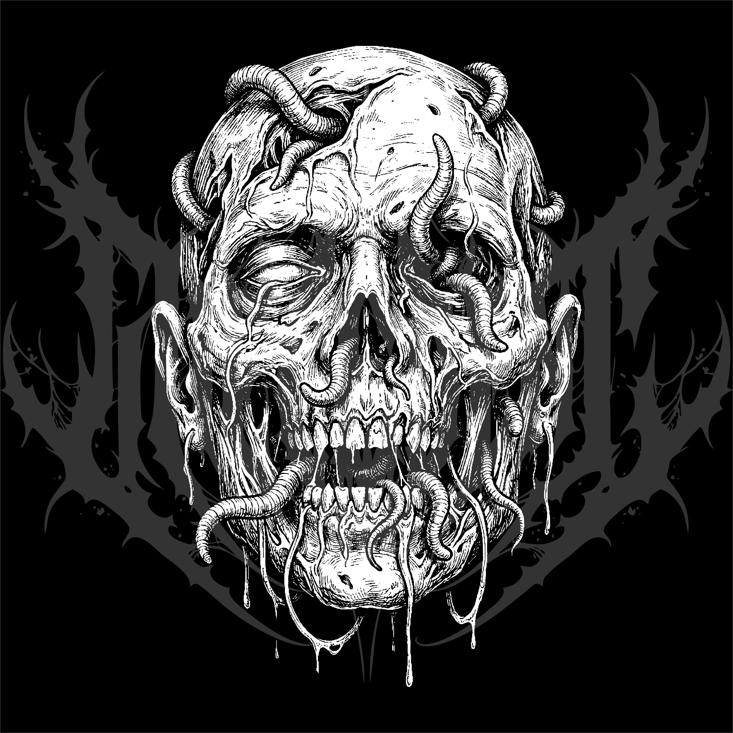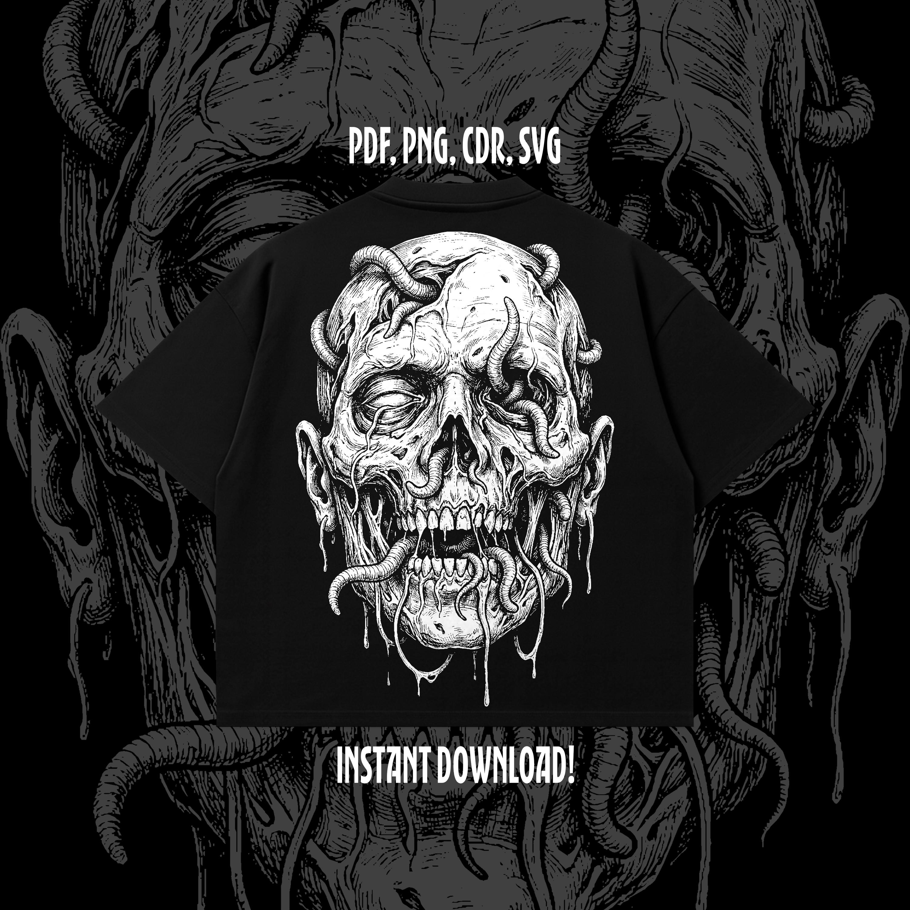 Design B&W Back Tee Dark The Worm Infested Wraith Horror Skeleton Gothic Grunge Vector Art