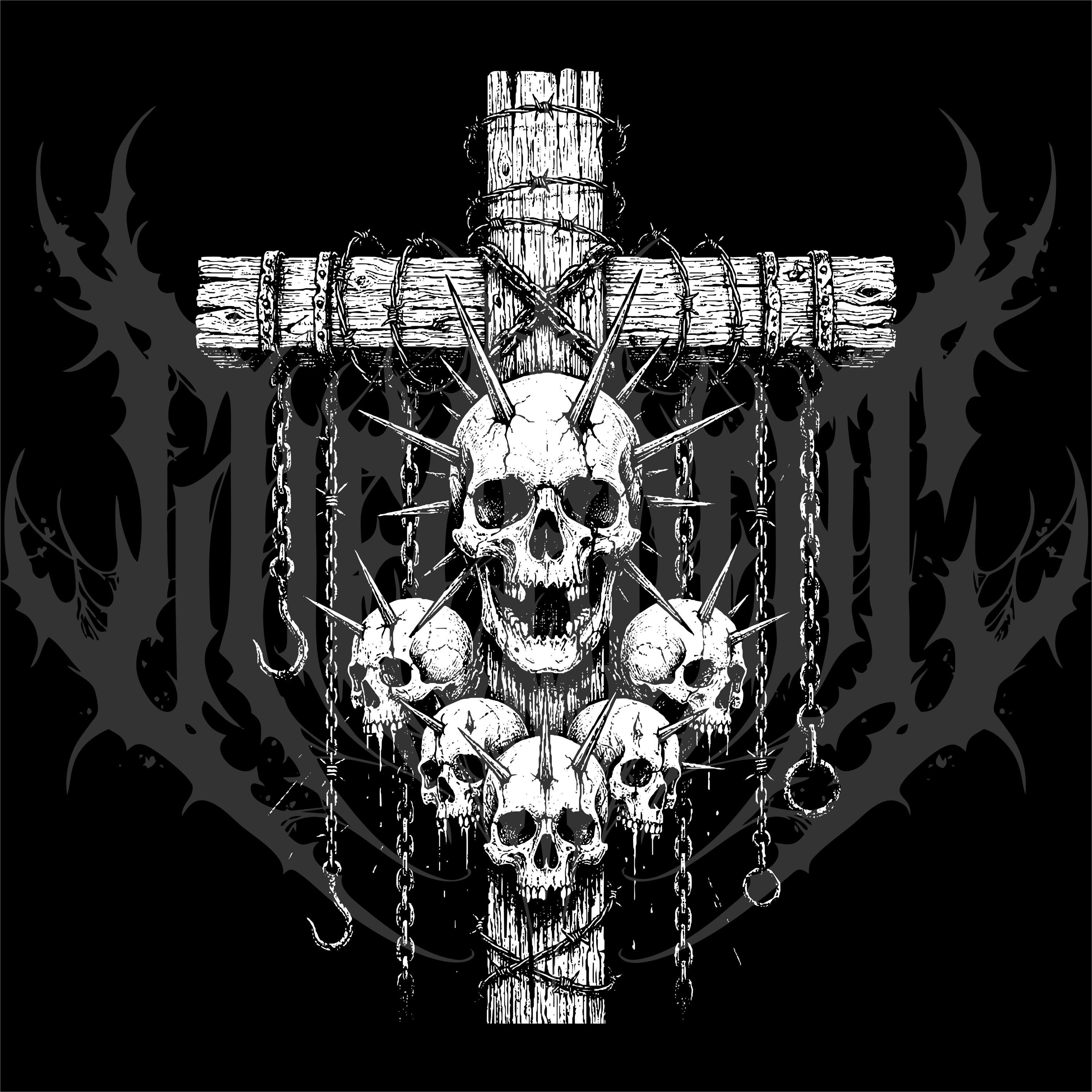Design B&W Back Tee Dark Crucible of Barbed Skulls Skeleton Gothic Grunge Vector Art