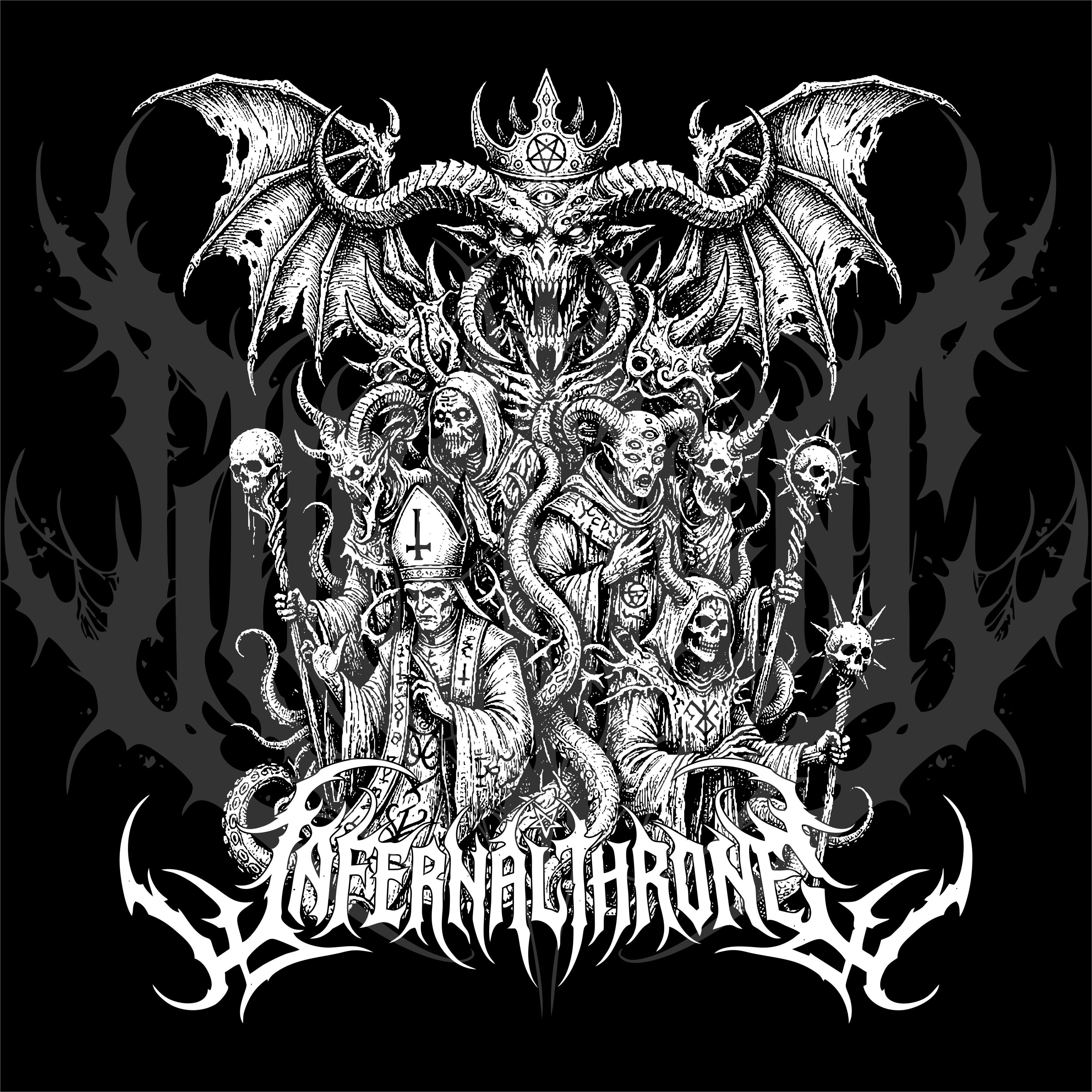 Design B&W Front Tee Dark Infernal Throne Horror Skeleton Gothic Grunge Vector Art