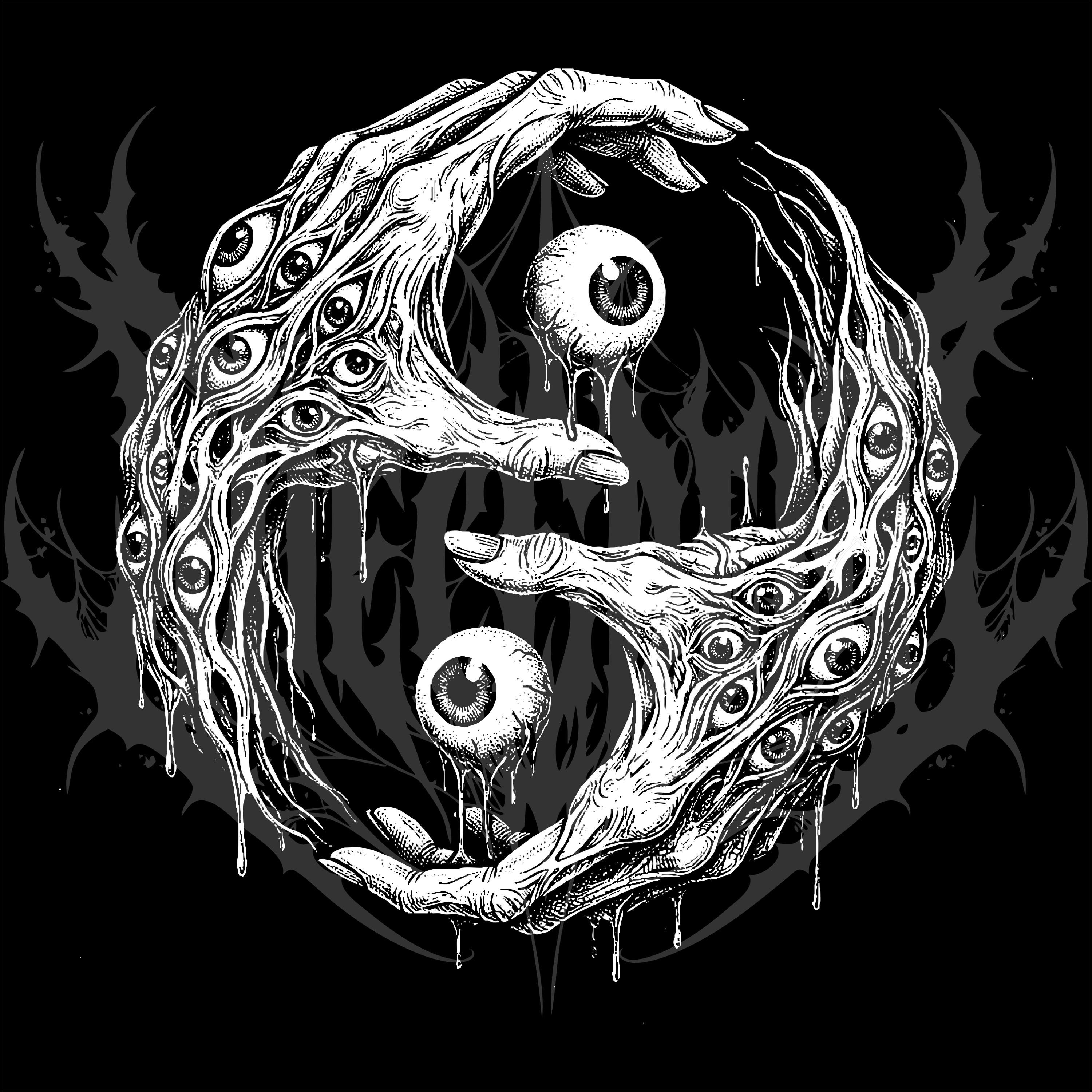 Design B&W Back Tee Dark Ocular Cycle Flesh Horror Skeleton Gothic Grunge Vector Art