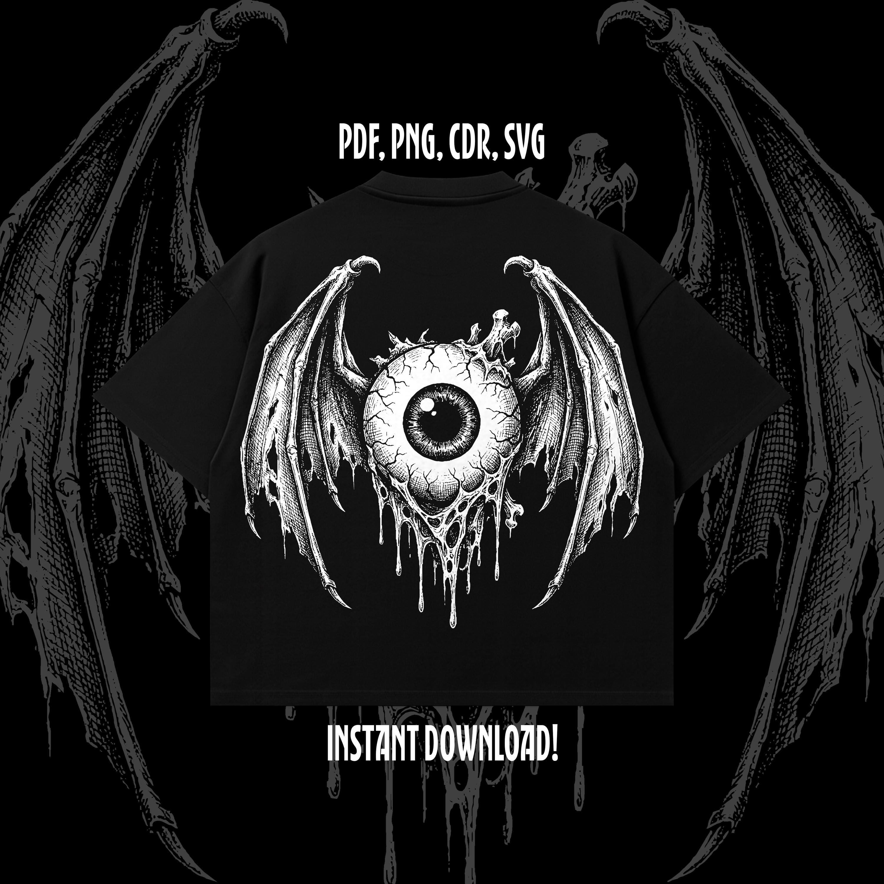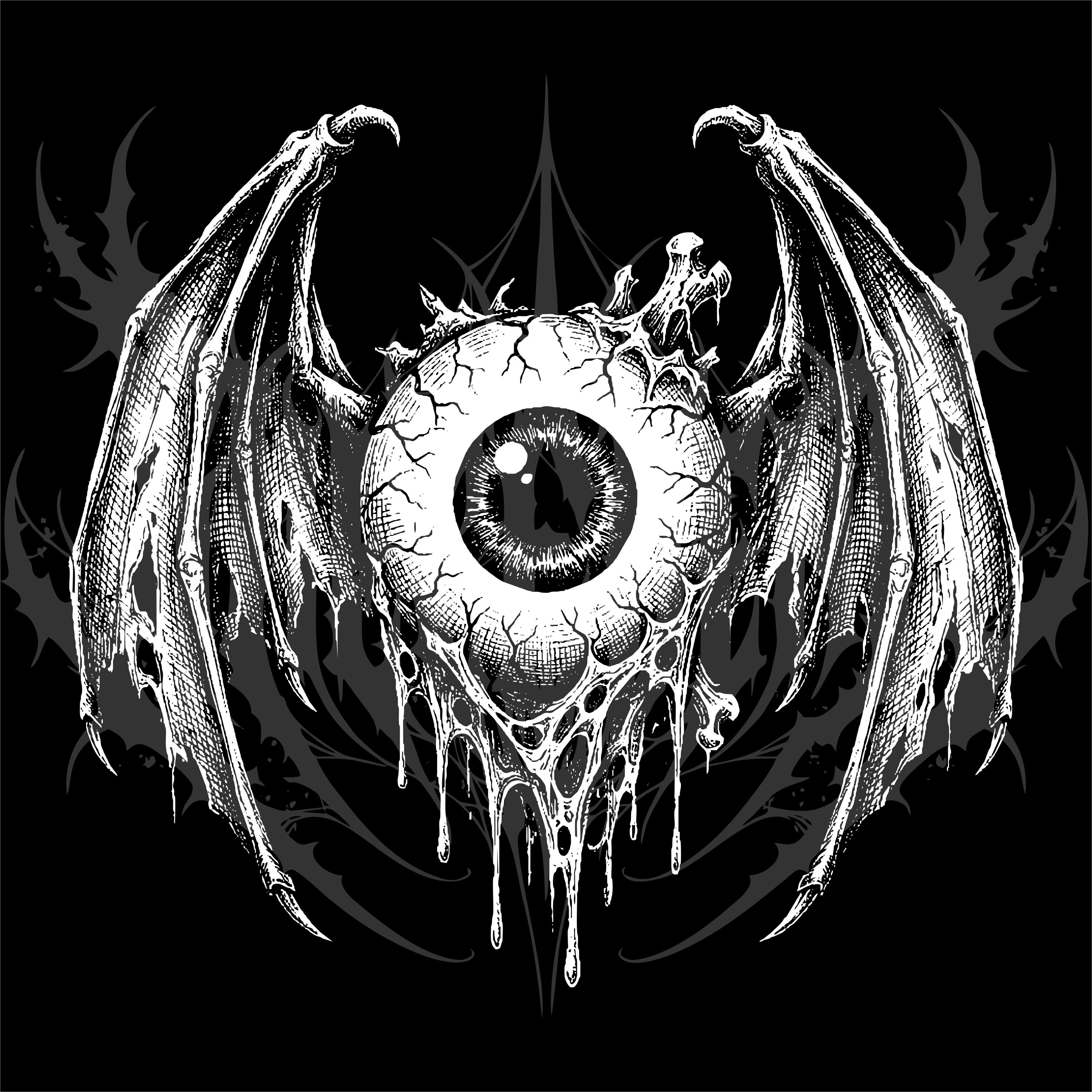 Design B&W Back Tee Dark Winged Ocular Abomination Horror Skeleton Gothic Grunge Vector Art