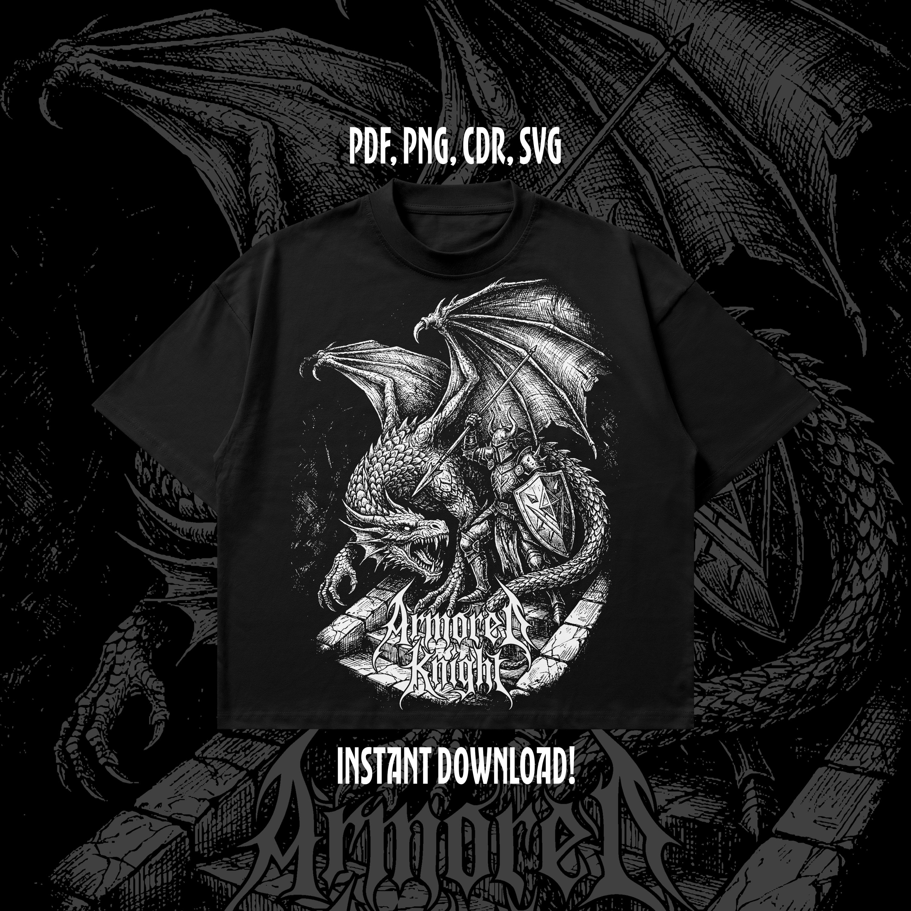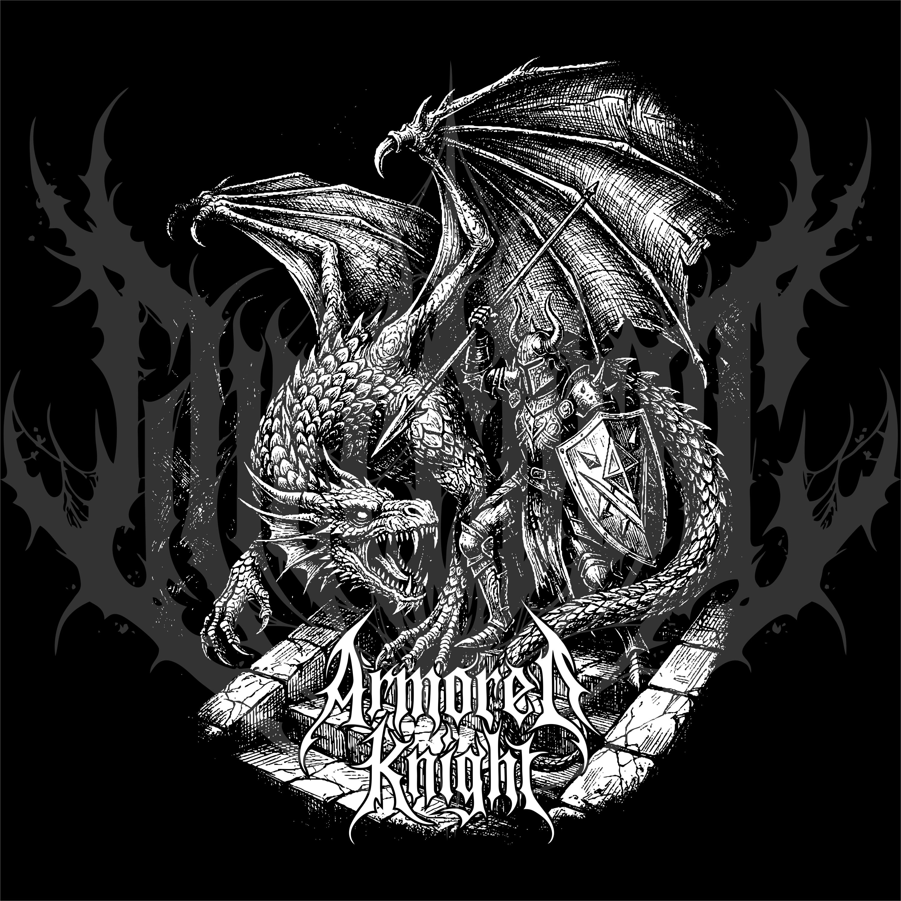 Design B&W Front Tee Dark Dark Armored Knight Metal Skeleton Gothic Grunge Vector Art
