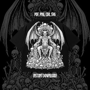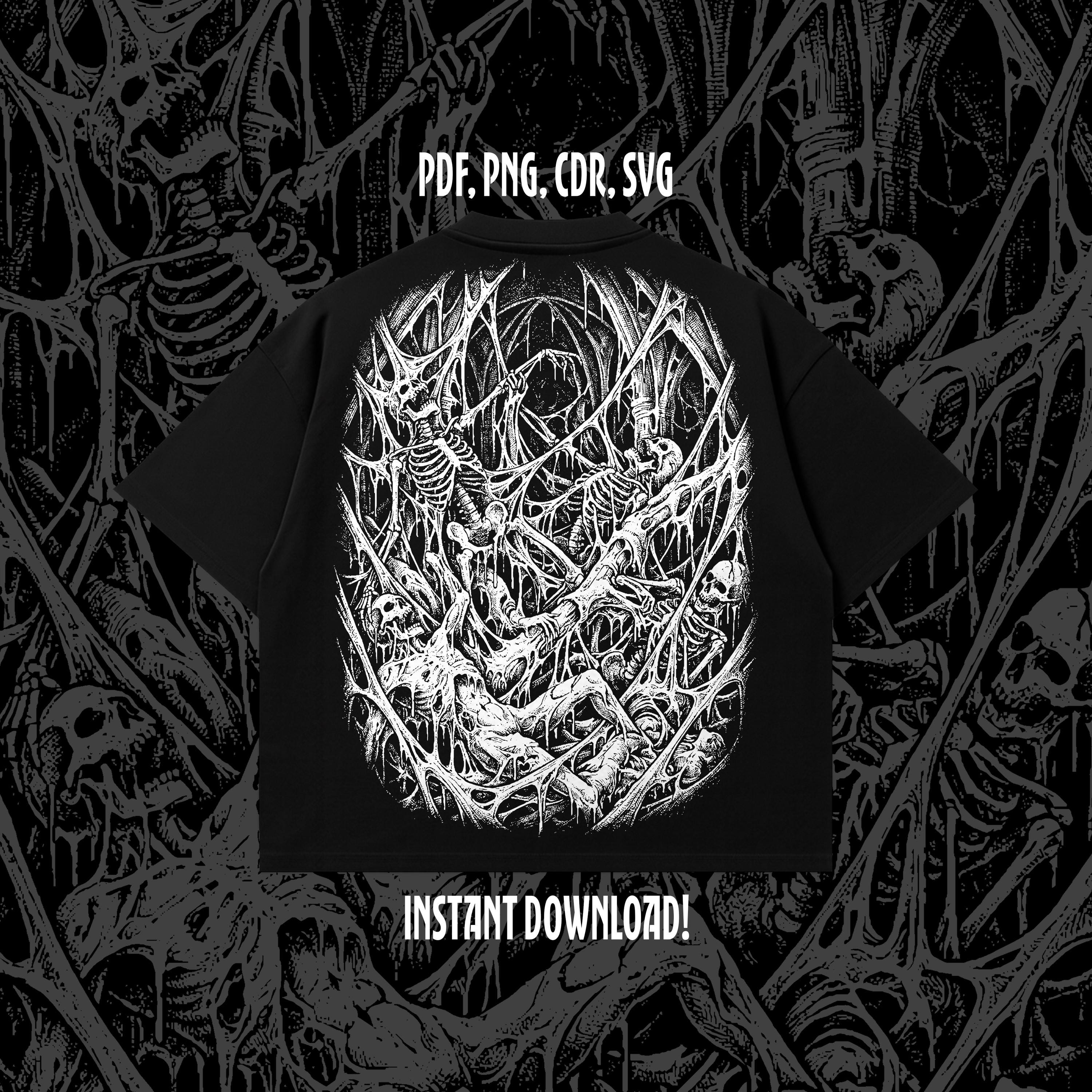 Hyper detailed gothic horror engraving illustration Strong black and white high contrast aesthetic Vector formats such as PDF SVG CDR or PNG depending on the listing Exceptional clarity even at very large sizes 8K style sharp appearance for professional results Optimized for apparel printing merchandise tattoo projects and dark fantasy artwork