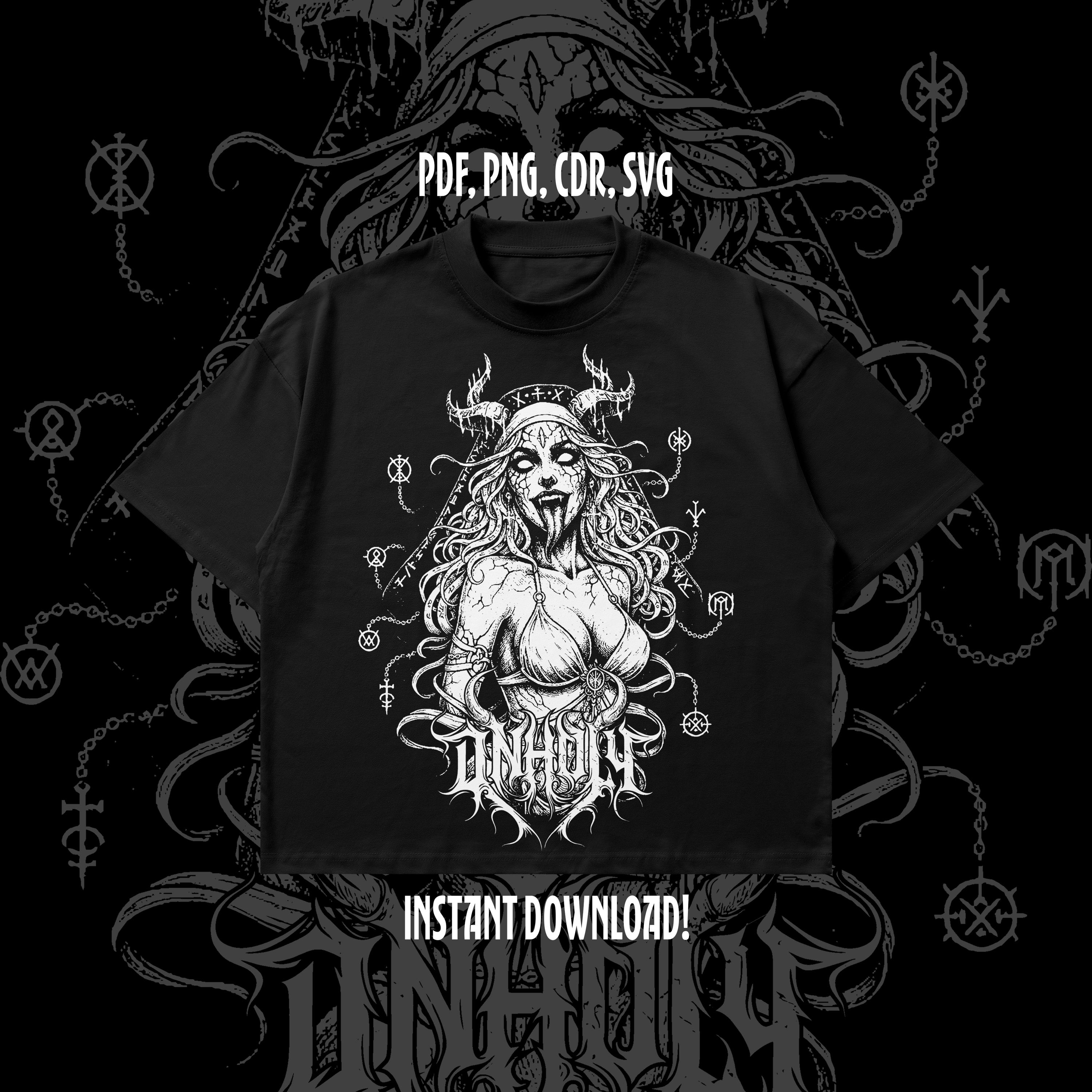 Perfect for Occult and gothic tattoo designs Blackwork and engraving tattoo flash Apparel and streetwear designs Posters and gothic wall art Occult branding and logos Album covers and book covers Stickers labels and packaging Dark ritual and fantasy compositions
