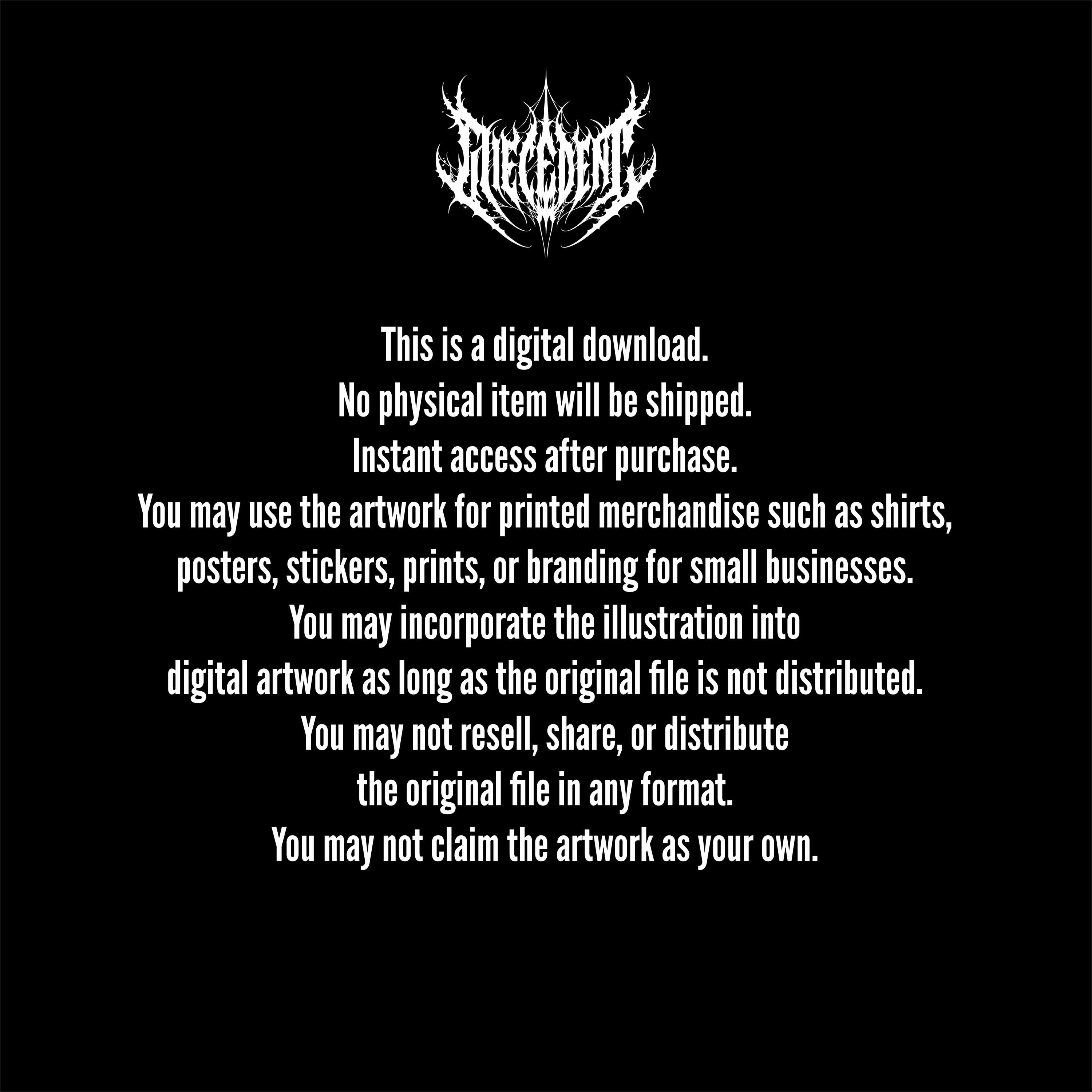 This illustration is designed for creators and brands who value occult symbolism ritual horror and uncompromising visual impact within the dark and alternative art community.